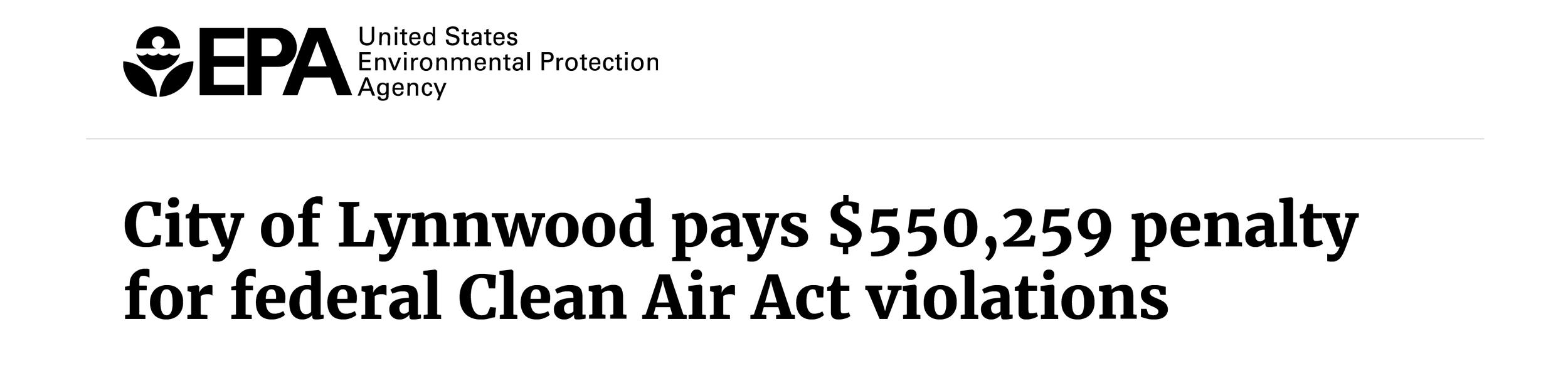 The Environmental Protection Agency (EPA ) Fined Lynnwood 550,000.00 for Violating the Clean Air Act designed to protect peoples Health